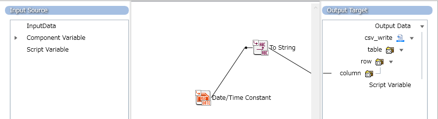 「日時定数」ロジックに設定された日時を文字列型に変換して出力します。