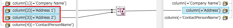 Mapperロジックの出力は、ほかのロジックや出力スキーマの要素にリンクをつなぎます。