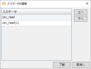 結果データを出力するコンポーネントを選択します。 各列は以下のボタンで操作することができます。