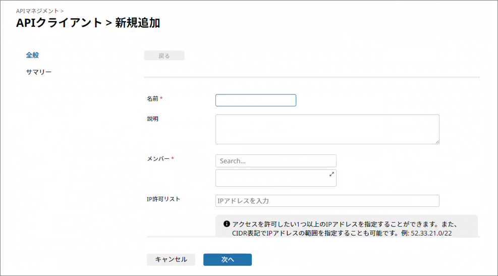 APIクライアントの設定については、「APIクライアント > 新規追加」を参照してください。