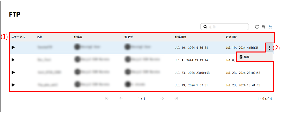 FTPページでは、FTP サービスごとの詳細なログを確認できます。