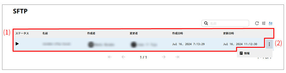 SFTPページでは、SFTP サービスごとの詳細なログを確認できます。