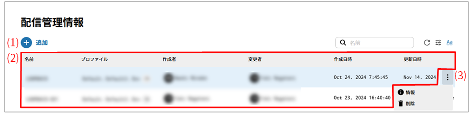 配信管理情報名に、配信管理情報の名前が表示されます。