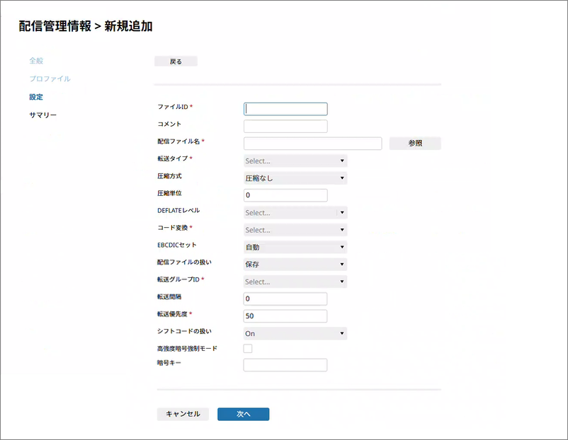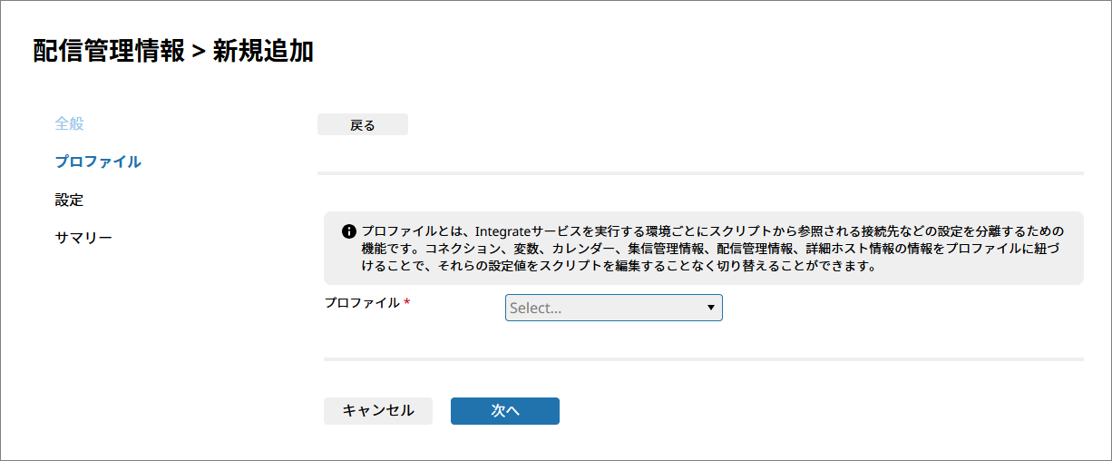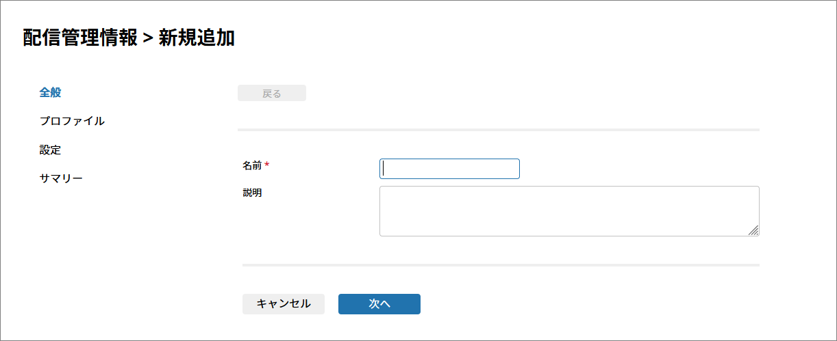 配信管理情報ページで追加を選択すると、このページが表示されます。