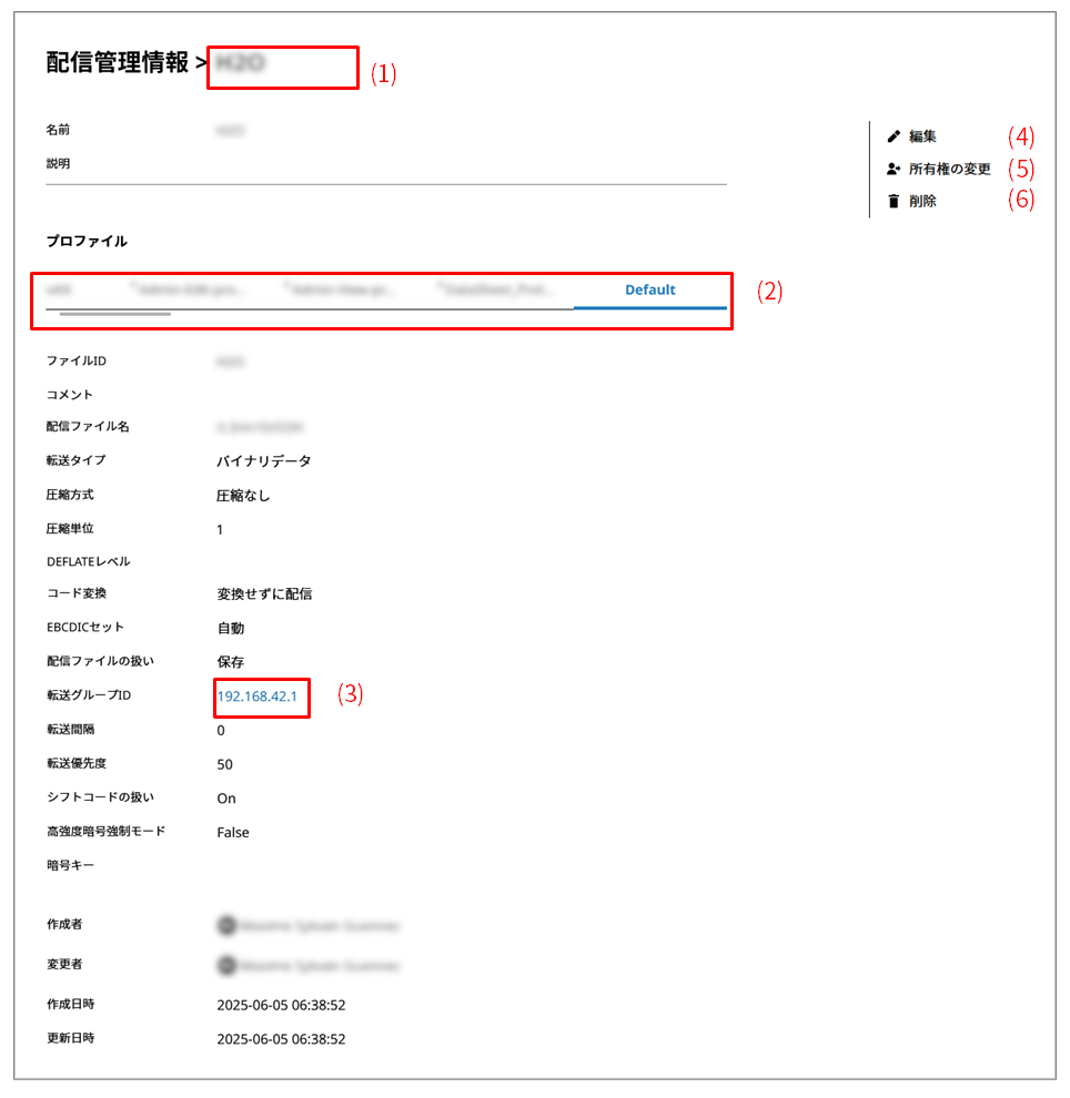 選択中の配信管理情報に関する詳細情報が表示されます。表示されている配信管理情報を編集および削除することができます。