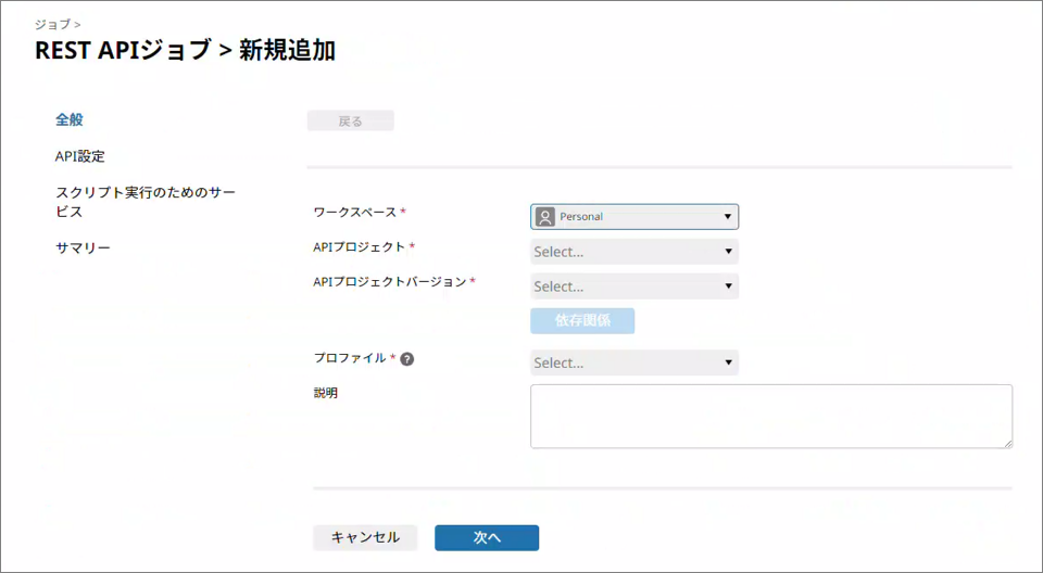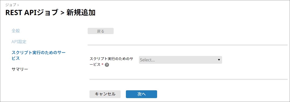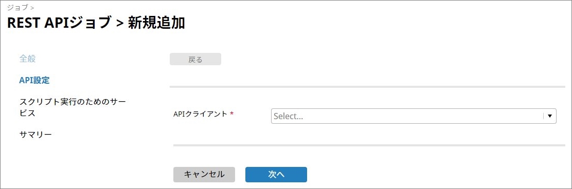 REST APIジョブページで追加を選択すると、このページが表示されます。