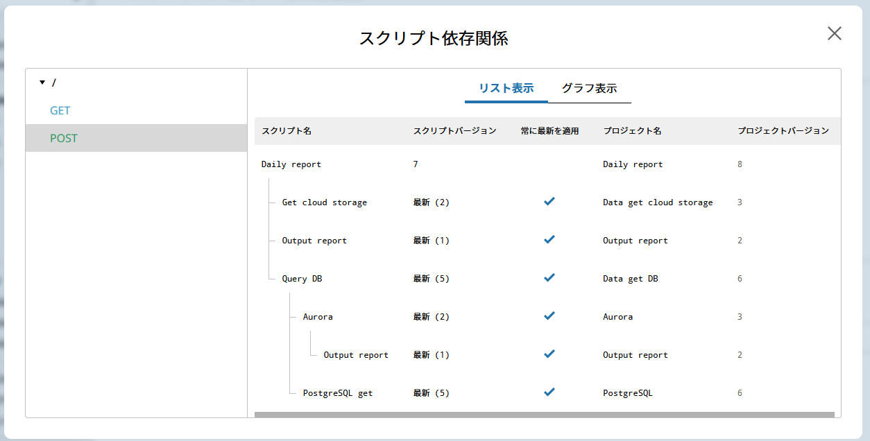 HTTPメソッドを選択してHTTPメソッドごとにスクリプト依存関係を設定してください。