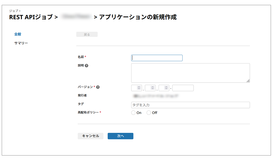 REST APIジョブ > REST APIジョブ名 > アプリケーションの新規作成