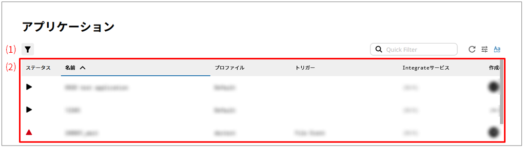 メインカテゴリーのアプリケーションページでは、アプリケーションの一覧が確認できます。表示されるのは、読み取り権限のあるプロファイルのアプリケーションだけとなります。