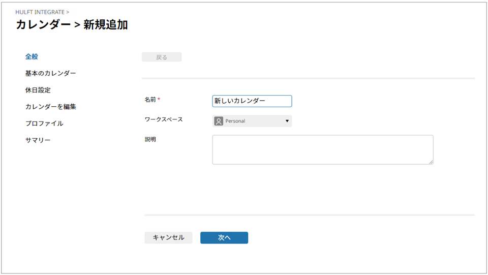 ナビゲーションメニューで > HULFT INTEGRATE > カレンダーを選択すると、このページが表示されます。
