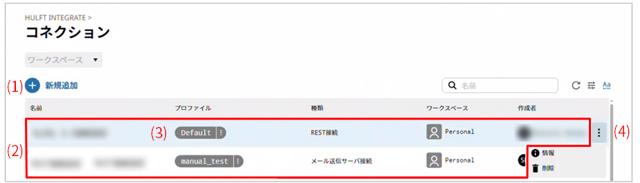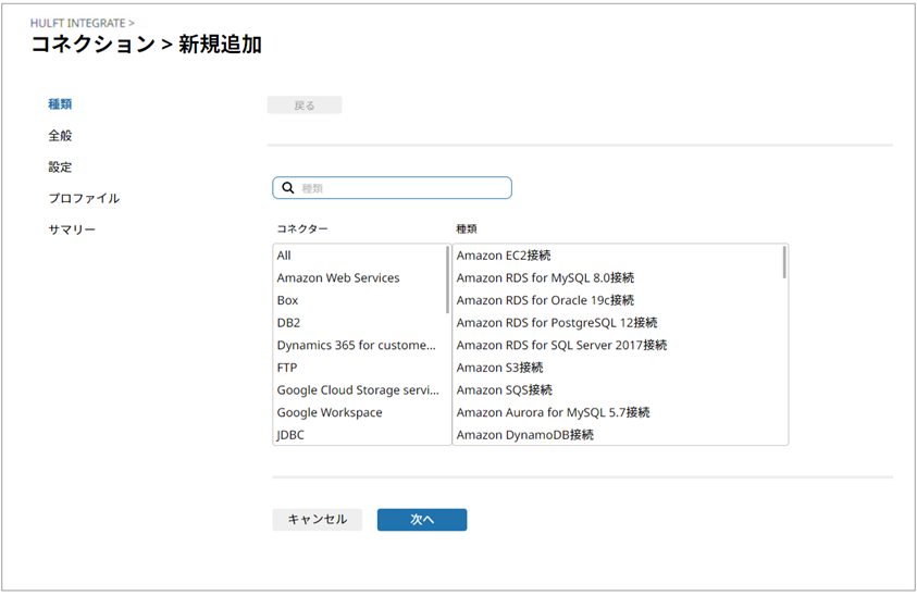ナビゲーションメニューで > HULFT INTEGRATE > コネクションを選択すると、このページが表示されます。