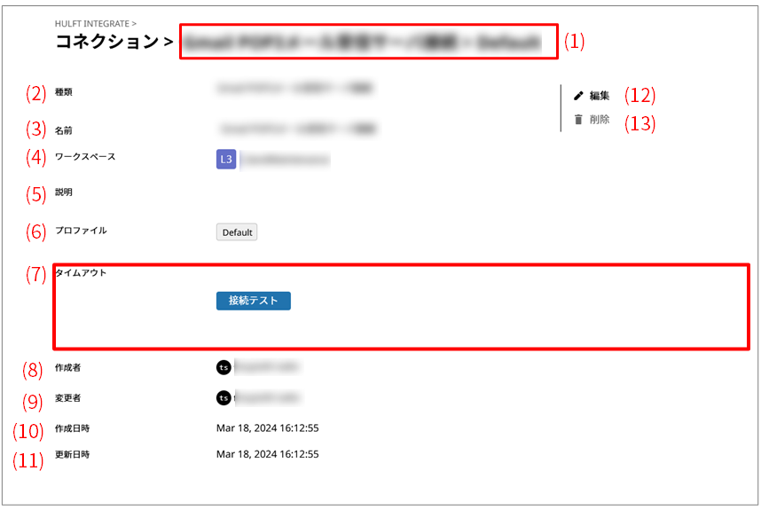 コネクションページで、設定リストのアクションメニューから、情報を選択すると、このページが表示されます。