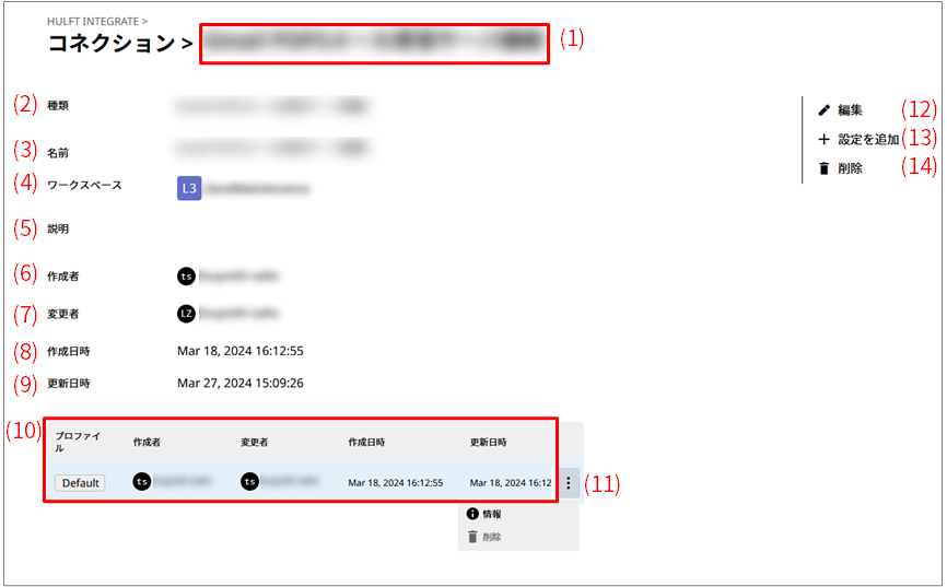 コネクションページでプロファイルのアクションメニューから情報を選択、またはコネクション > コネクションリソース名ページでプロファイルリストのアクションメニューから情報を選択すると、このページが表示されます。