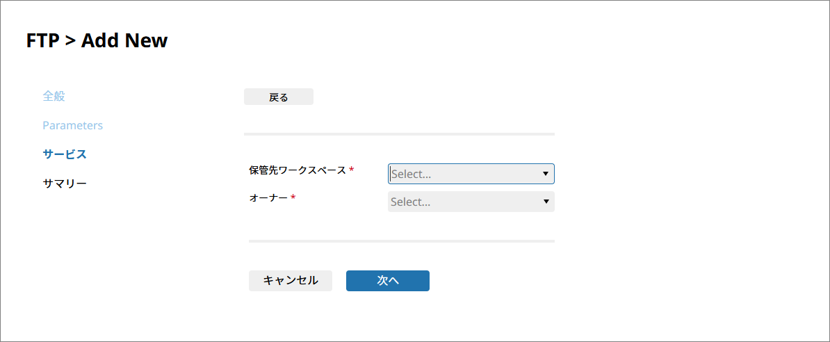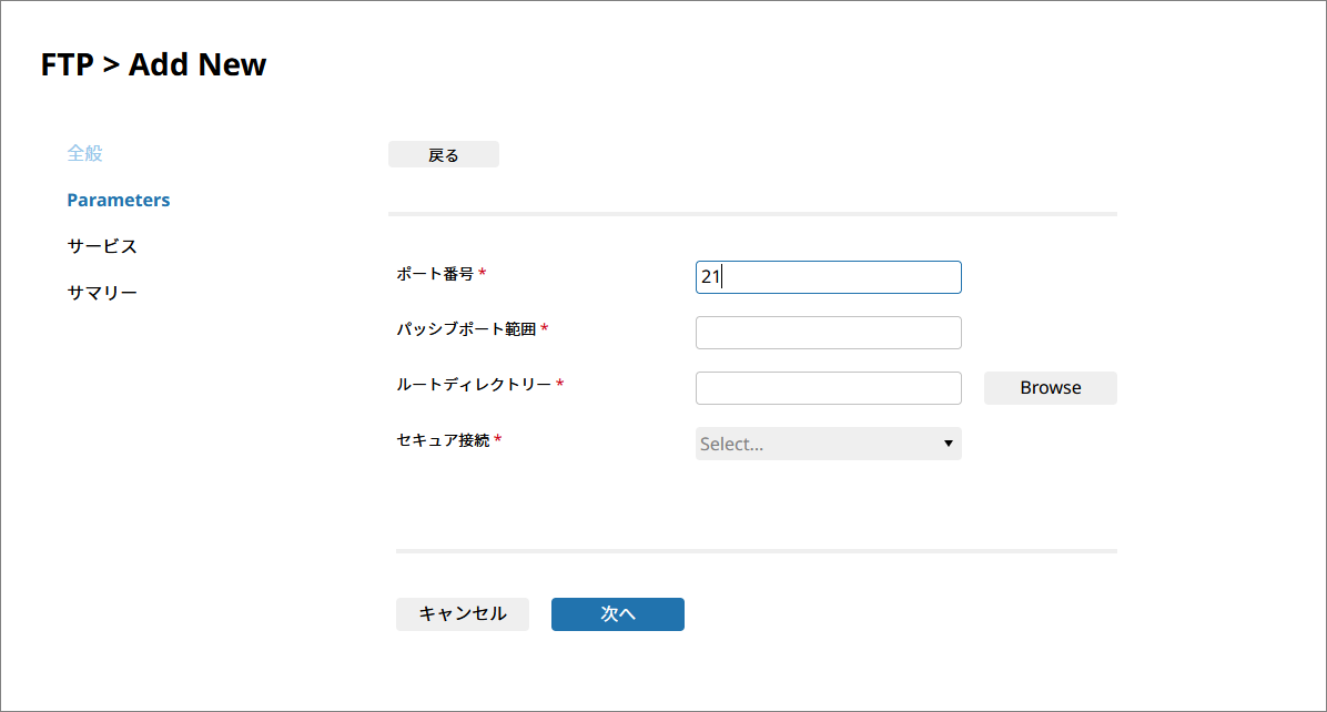 FTP サービスの設定については、「FTP > Add New」を参照してください。
