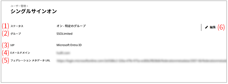 フェデレーションメタデータURLについての詳細は、「[シングルサインオン]の編集画面」の「(5) フェデレーションメタデータURL」を参照してください。