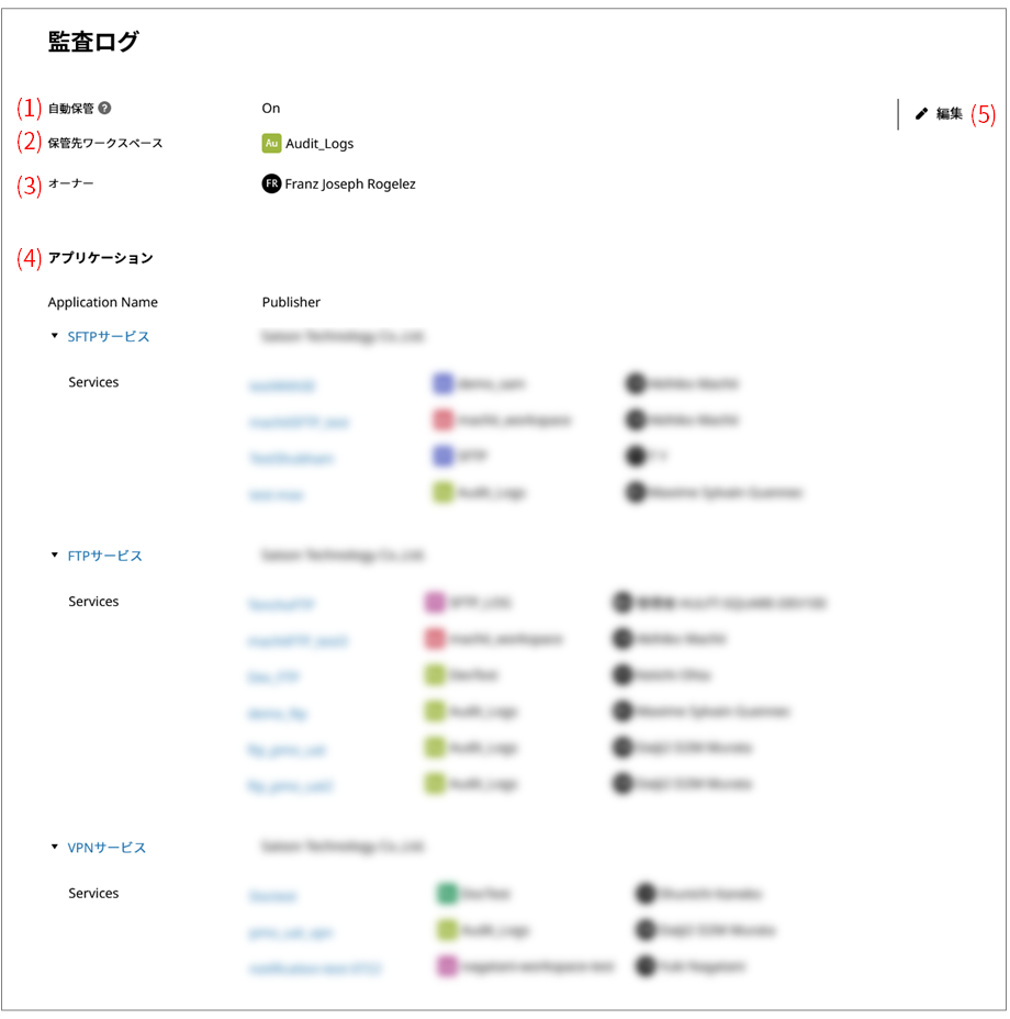 監査ログページでは、監査ログの自動保管設定の有効化/無効化、および監査ログの保管先に関する設定を行います。