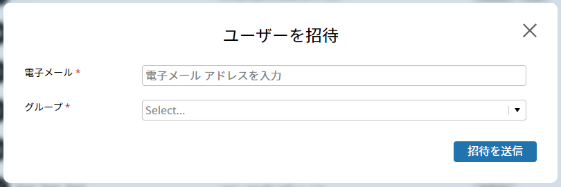 ユーザーを招待するには、電子メールアドレスとグループを入力します。選択したいグループがない場合は、グループを作成します。