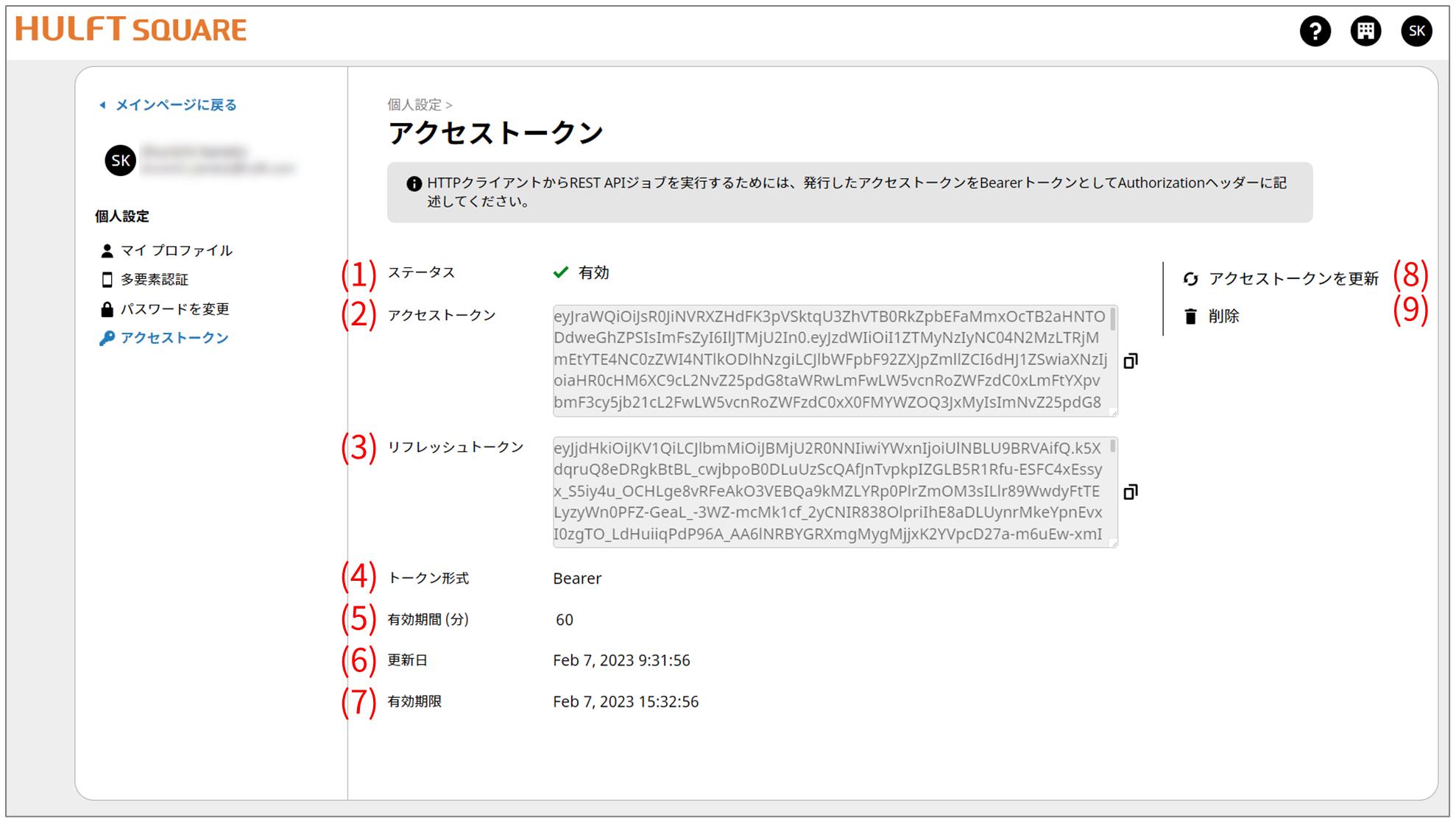 HULFT SquareのWeb画面ではなく、お客様環境のプログラムでAPIからアクセストークンを更新する際にリフレッシュトークンを使用します。