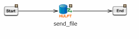 デザイナーを開き、ツールパレットからHULFT > HULFT Transfer App > 単一配信要求をスクリプトキャンバスにドラッグ&ドロップで配置します。