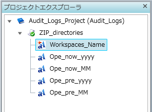 初期値には/${Workspaces_Name}/hsq-logs/${Ope_pre_yyyy}/hsq-logs${Ope_pre_yyyy}${Ope_pre_MM}.zipが入力されています。ワークスペースAudit_Logsのディレクトリーにhsq-logs202309.zipのようなZIPファイルが作成されます。