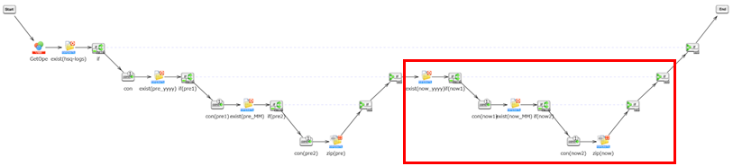 = 備考 =赤枠で囲ったオペレーションでは、当月分のZIPファイルを作成する処理を行っています。
