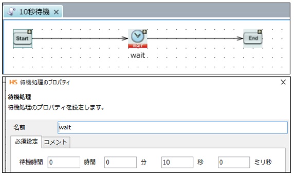 デザイナーが起動するので、10秒待機するスクリプトを作成します。