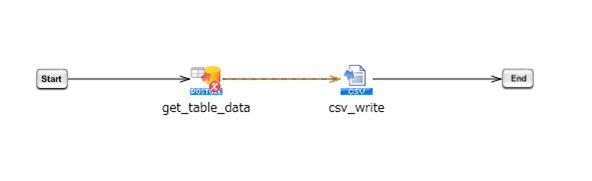 デザイナーのツールパレットデータベース > PostgreSQL > テーブル読み取りをスクリプトキャンバスにドラッグ&ドロップします。
