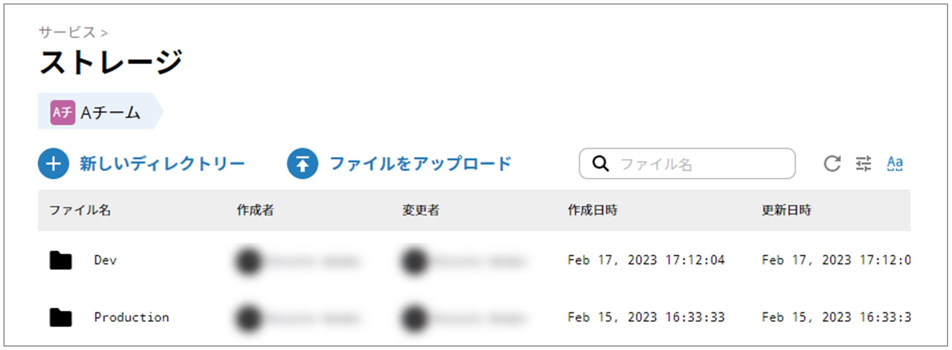 「Aチーム」のストレージに、以下の手順でディレクトリーを作成してください。