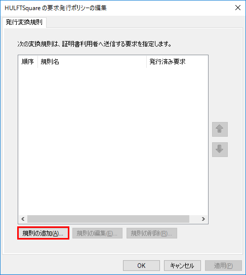HULFTSquareの要求発行ポリシーの編集画面で、規則の追加を選択します。