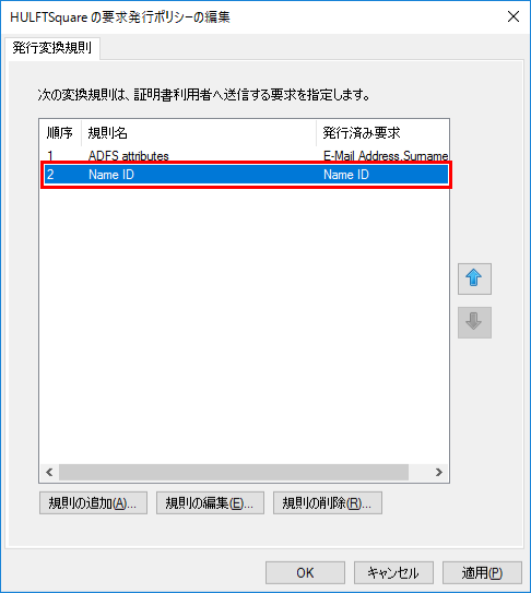 発行変換規則「タブに「Name ID」という名前の規則が追加されます。