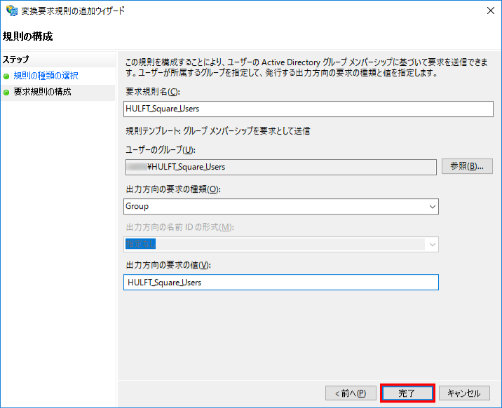 (5)Active DirectoryのグループをHULFT Squareのグループにマッピングする