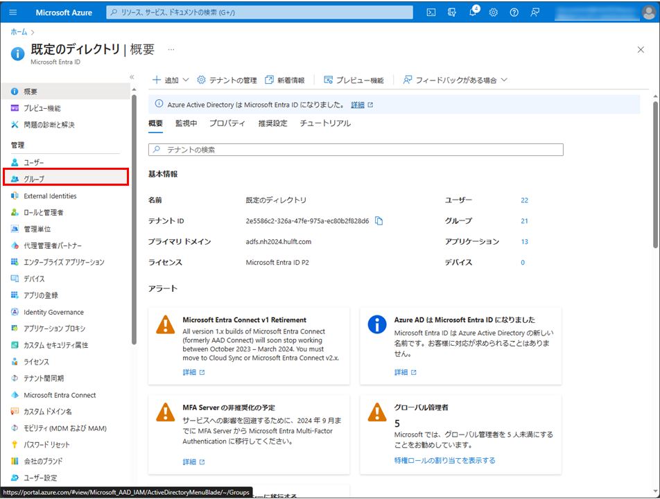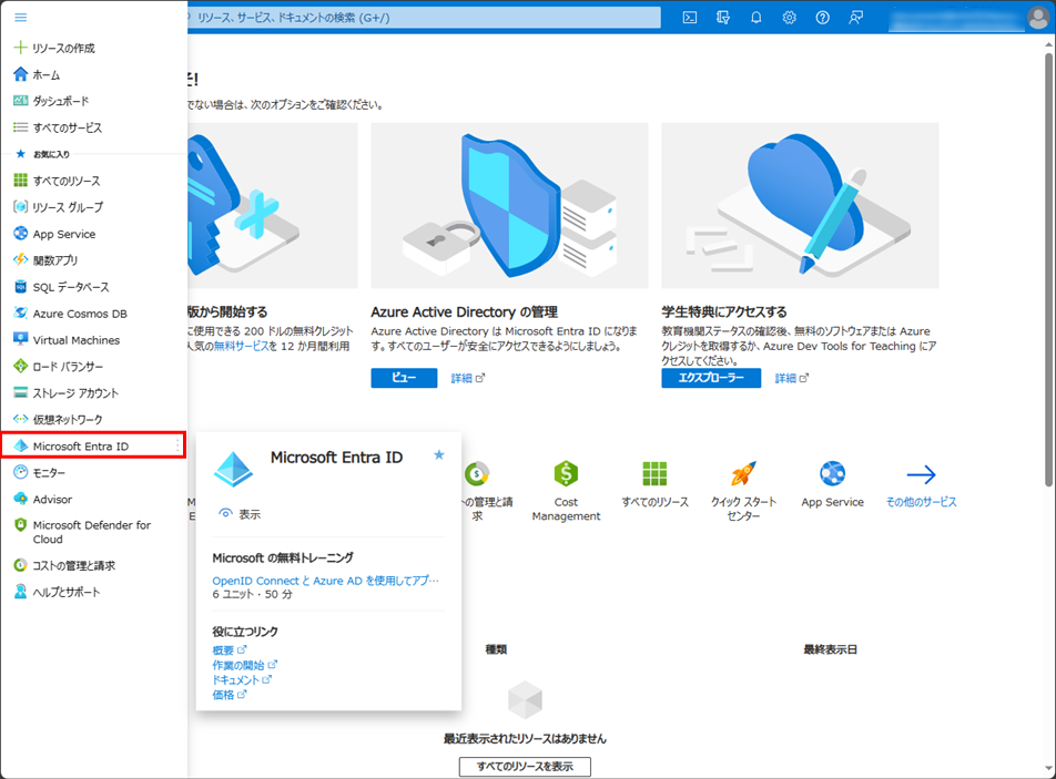 Azure ポータル メニューから、Microsoft Entra IDを選択します。