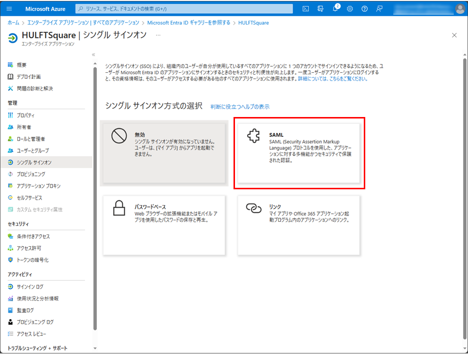 HULFT Squareは、Microsoft Entra ID(旧:Azure AD)を使用したシングルサインオン(SSO)に対応しています。