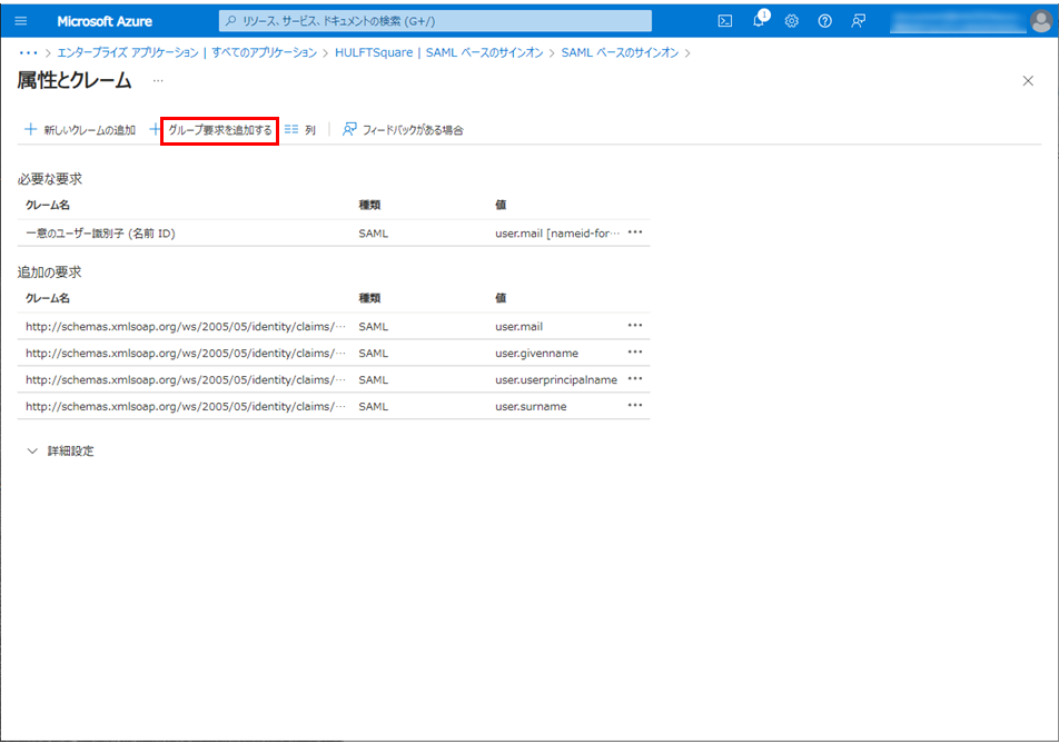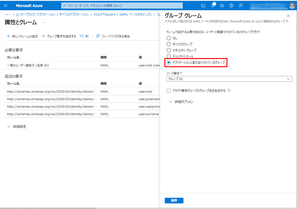 Microsoft Entra ID上のグループをHULFT Squareのグループにマッピングしない場合、以上でMicrosoft Entra IDの設定は完了です。