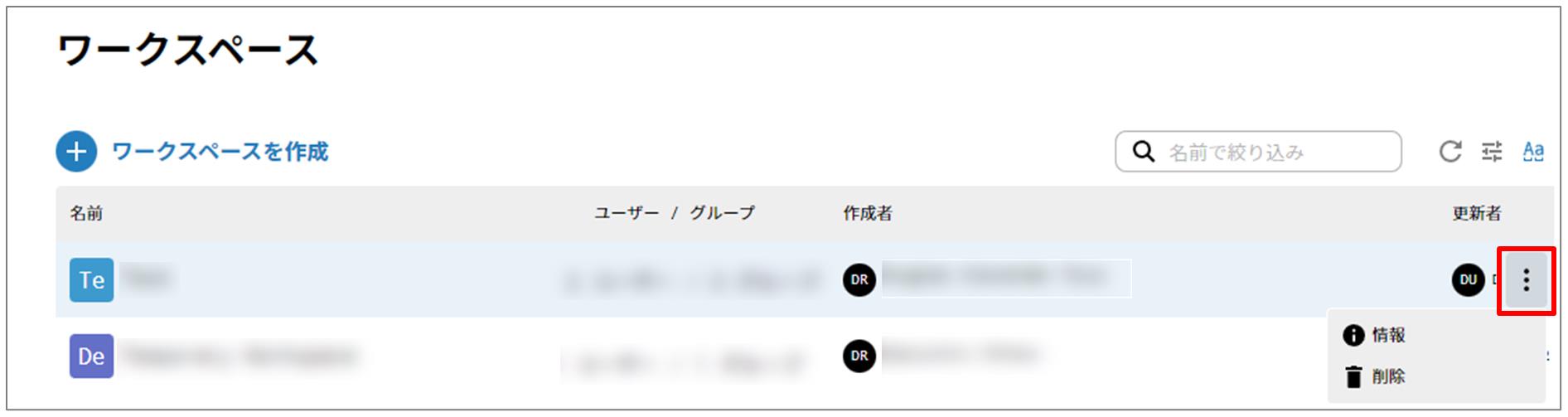 1. ワークスペースぺージで、作成済みのワークスペースのアクションメニューを選択します。