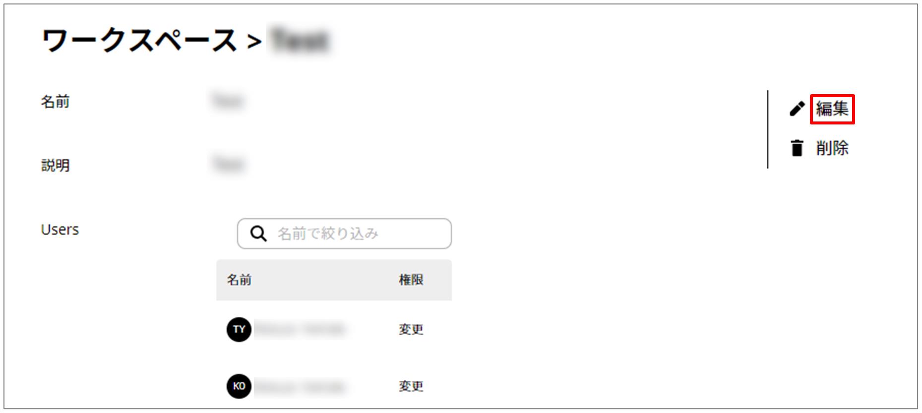 3. ワークスペース > ワークスペース名ページで編集を選択します。