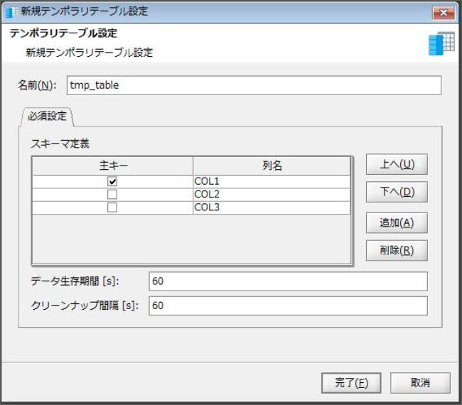 テンポラリテーブル設定画面に設定する項目について説明します。