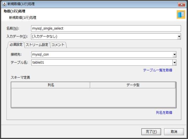 取得(1行)処理を行うMySQLのテーブル名を指定してください。