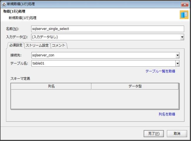 取得(1行)処理を行うSQL Serverのテーブル名を指定してください。