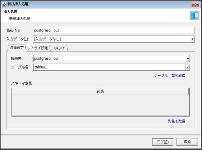 挿入処理を行うPostgreSQLのテーブル名を指定してください。