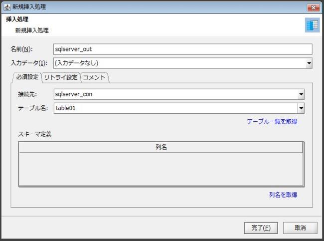 挿入処理を行うSQL Serverのテーブル名を指定してください。