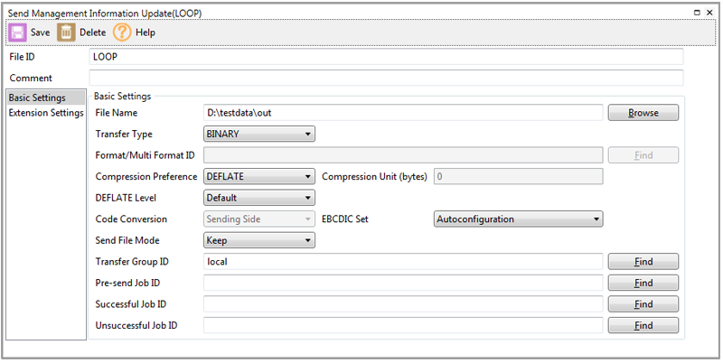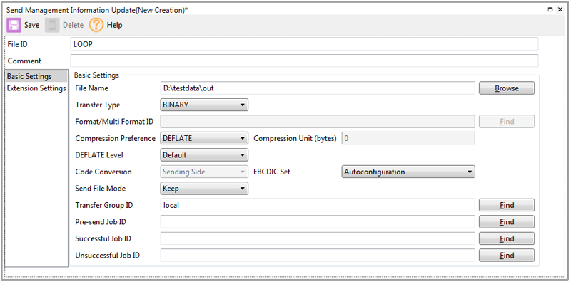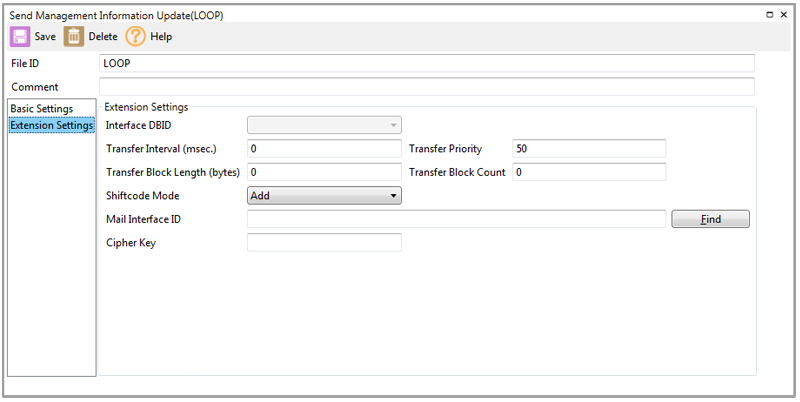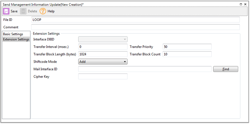 As mentioned above, a parameter file can be created by specifying the type (send, receive, etc.) and the ID of the management information.