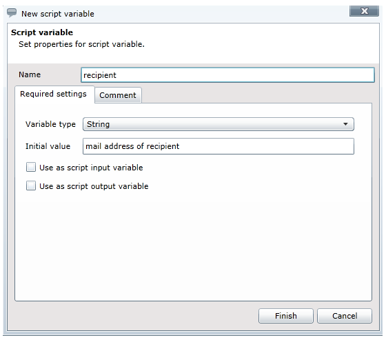 3. For the processing to send a single email, specify script variables for the sender's email address and the recipient's email address.
