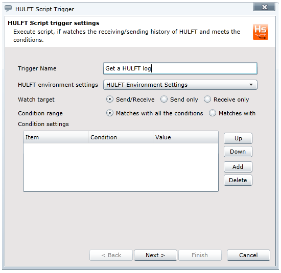 HULFT Script is a product with a GUI (graphical user interface) that allows you to more easily create and operate processes that are commonly used before and after HULFT file transfers. The series of processes that make up a service is called a script. You can execute the scripts you create by using a trigger or an external program.