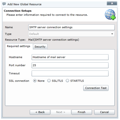 2. In Global Resources, create the settings to connect with the outbound mail server.