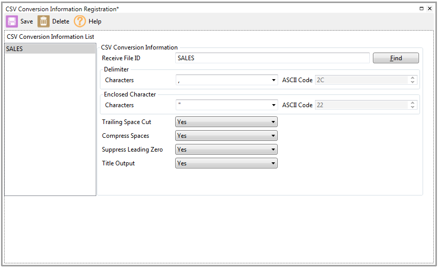 Specify the File ID of the receive file you want to convert to CSV. - Delimiter
