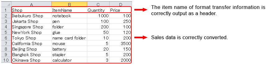 After the file has been received, the sales data is converted to CSV based on the CSV Conversion Information.