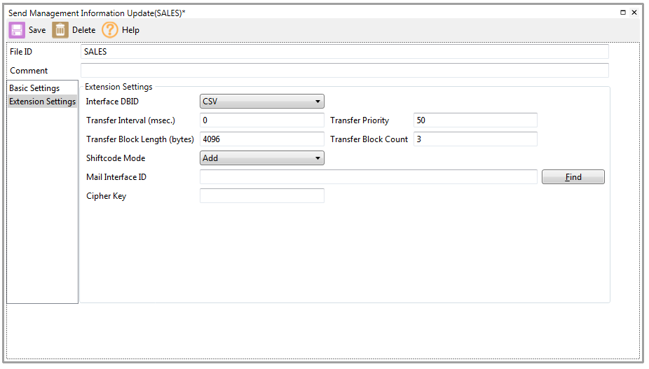 3. In Send Management Information, for Interface DBID, specify CSV.