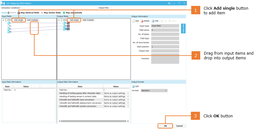 In this example, we used a CSV file. However, you can map data with the same mouse operations when you work with other file formats, as well.