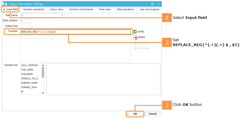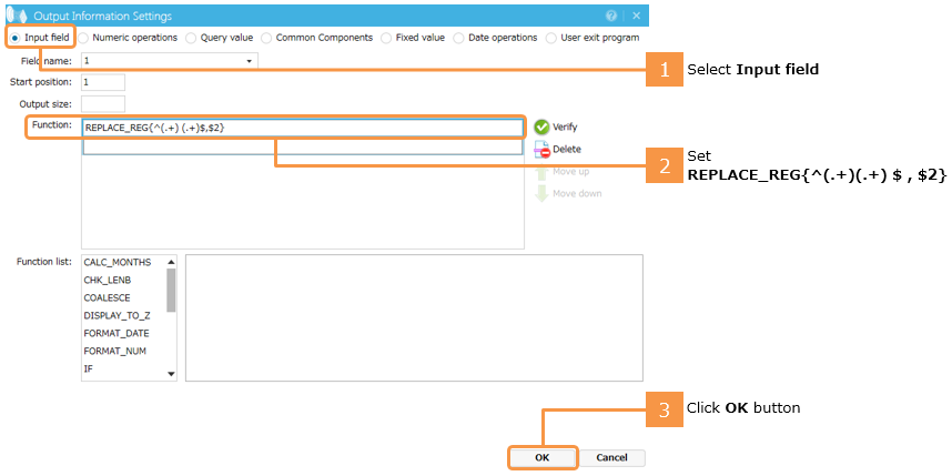5. Use the REPLACE_REG function to specify processing to only output the first names.